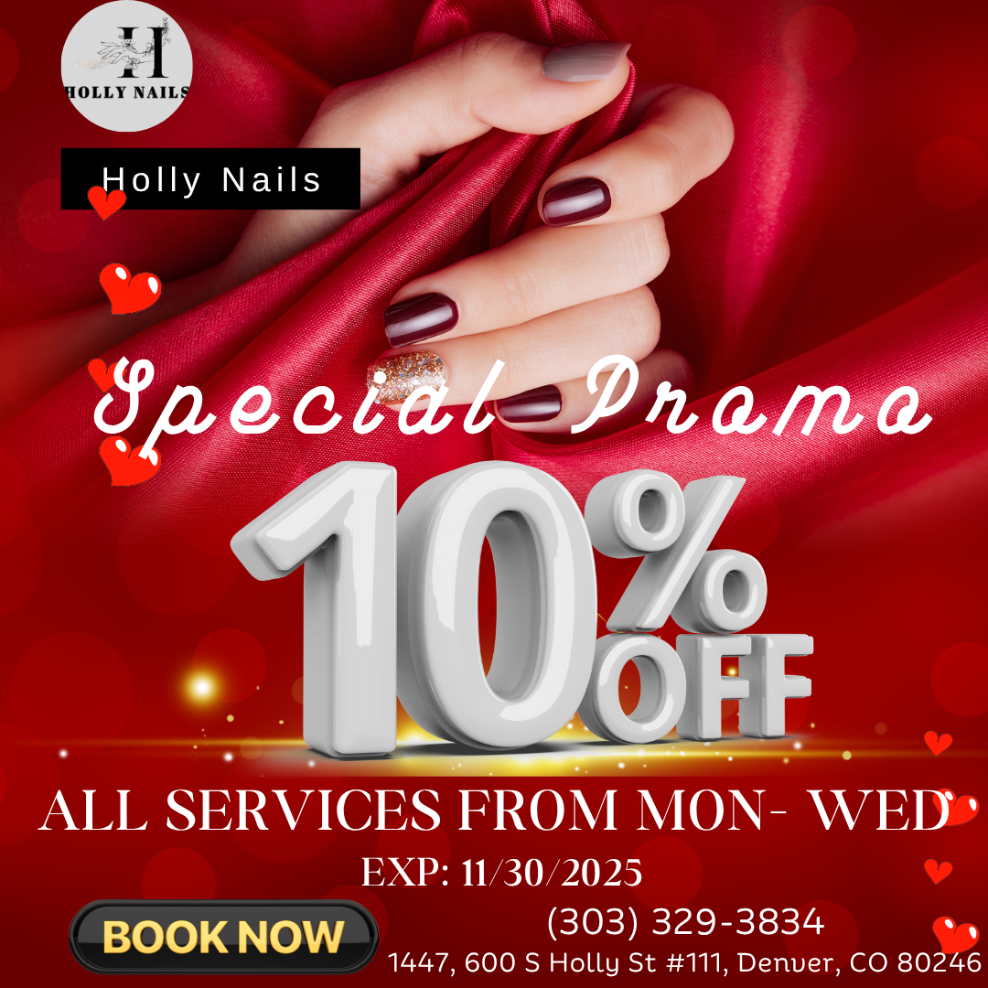 Come and experience our exceptional services at Holly Nails. Gift Certificate Available- Appointment & Walk-ins Welcome!